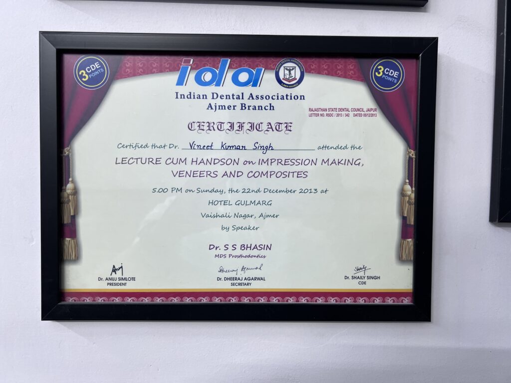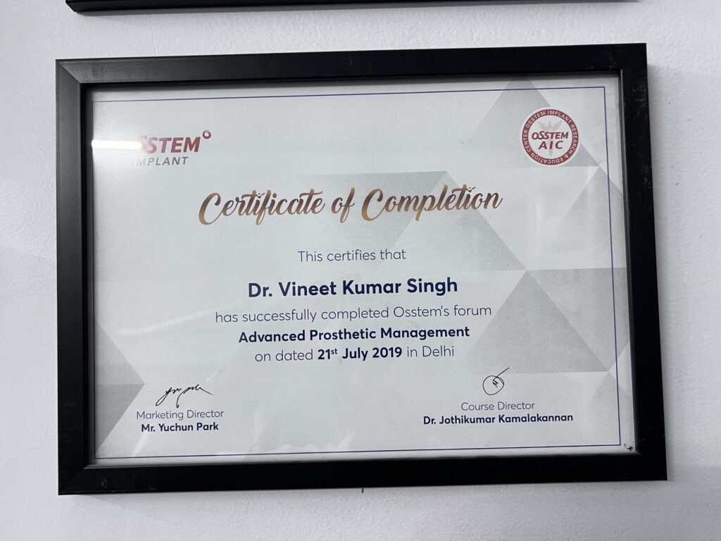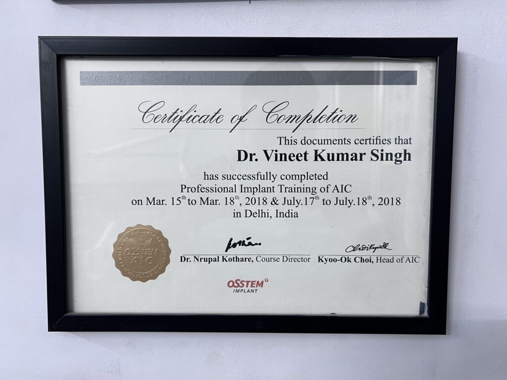 With over 11 years of dedicated clinical experience, Dr. Vineet Kumar Singh is a renowned expert in complex dental implants, oral diagnostics, and full-mouth rehabilitation. His precision in placing 3,000+ implants and performing 10,000+ root canals has made him a trusted name in Delhi-NCR’s dental community.